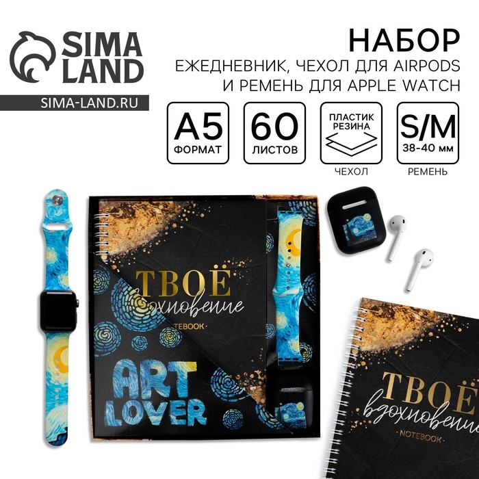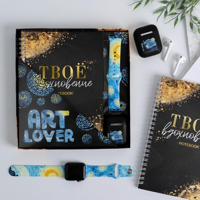 Подарочный набор: ежедневник, чехол для наушников и ремень для часов «Art lover», 20 х 22 см