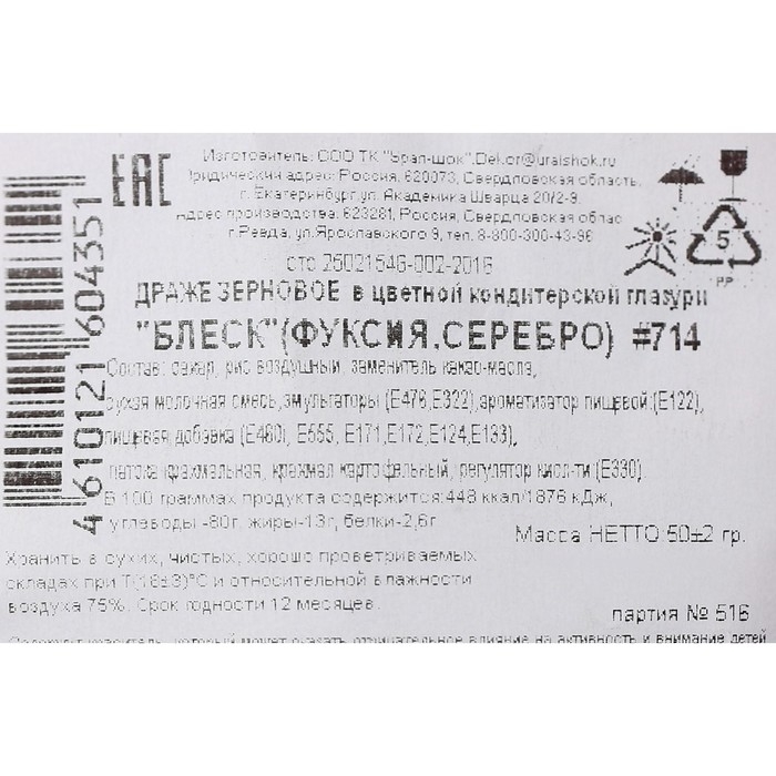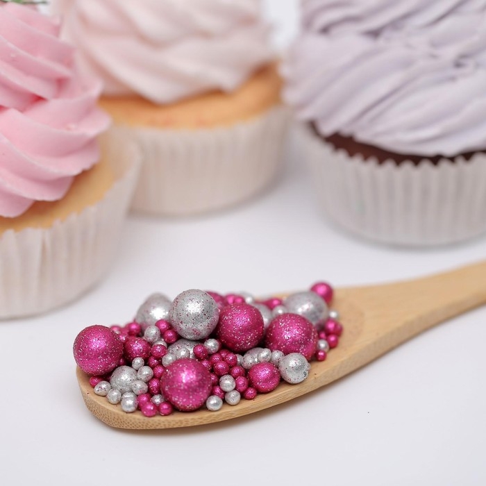 Посыпка кондитерская "Блеск", взорванные зерна риса, фуксия, серебро, 50 г