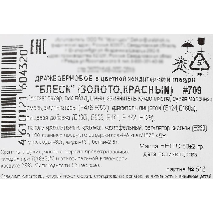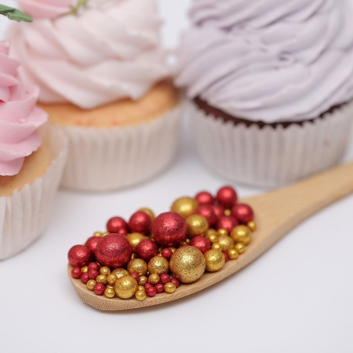 Посыпка кондитерская с глиттером «Блеск», золотой, красный, 50 г