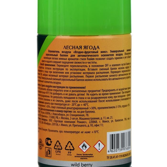 Освежитель воздуха ягодно-фруктовый микс. Универсальный сменный аэрозольный баллон для автоматического освежителя воздуха. Обновленная коллекция легких ароматов позволит создать гармонию и уют в вашем доме и надолго сохранит ощущение свежести и чистоты.