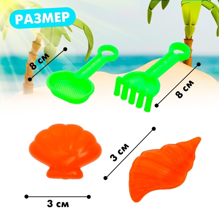 С помощью совочка и формочек ребёнок будет строить замки, лепить фигуры различных морских животных.
