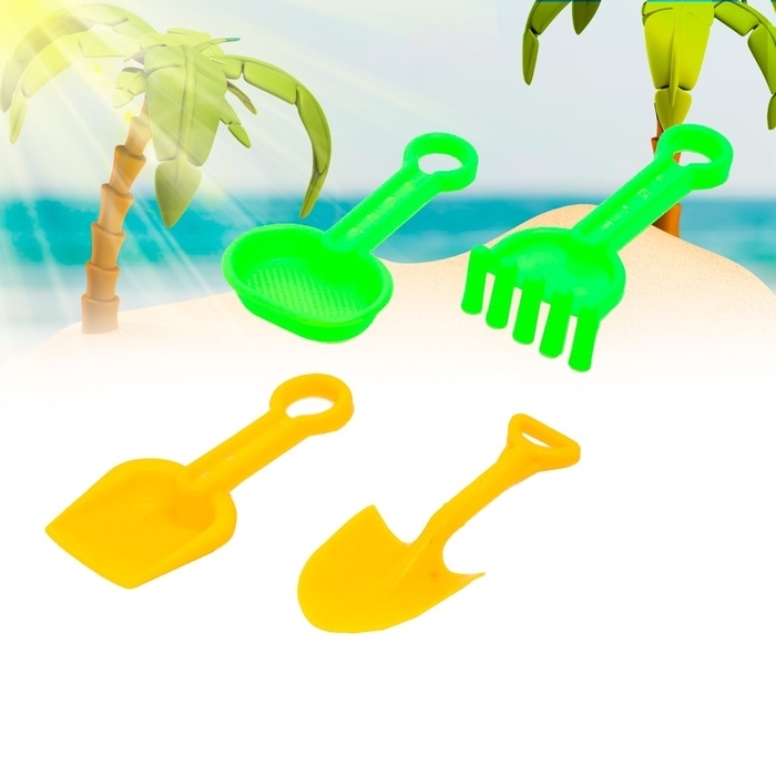 Набор для игры в песке №1: ведёрко, 4 формочки для песка, грабельки, лопатка, МИКС