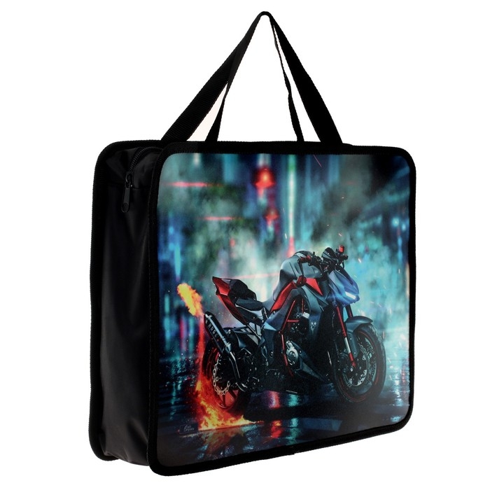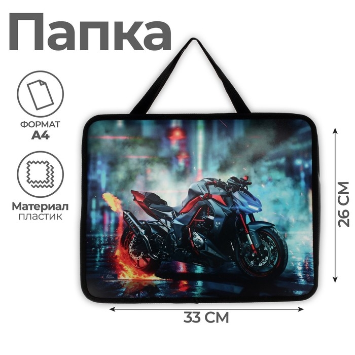Папка с ручками А4, 330 х 260 х 75 мм, пластиковая, ручки-тесьма, Calligrata "Мотоцикл"