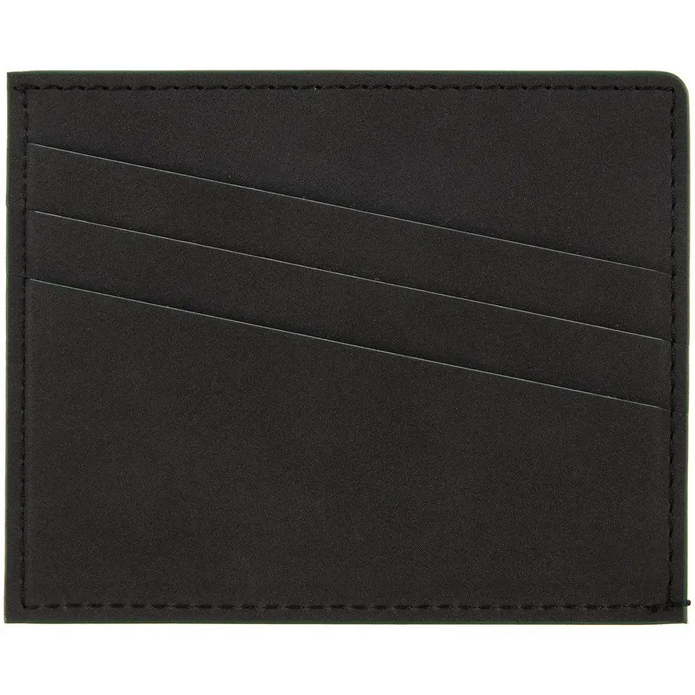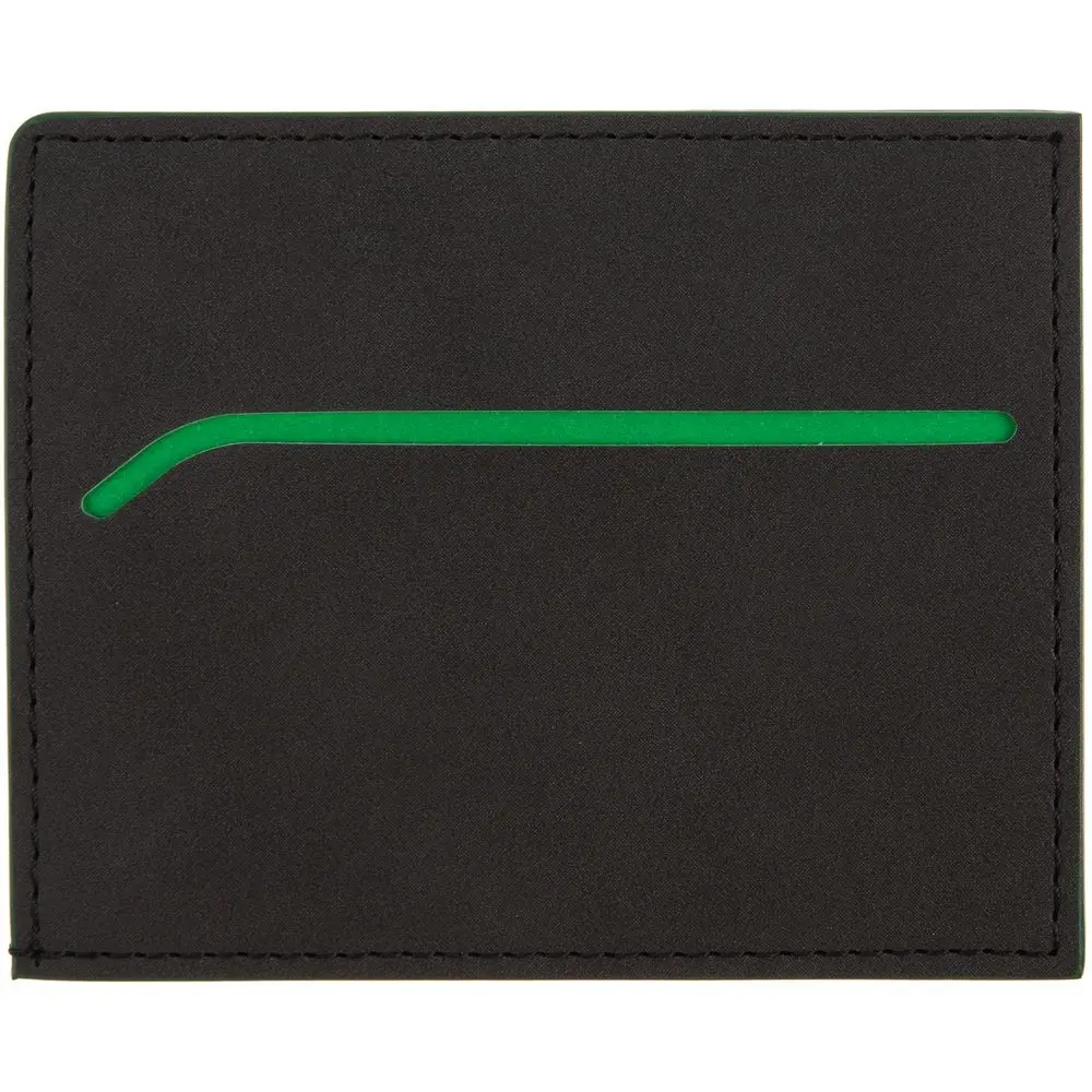 Чехол выполнен из материала Soft Touch Pearl, черный АА, дополнен окрашенным срезом края и внутренним карманом из цветного картона. Имеет 4 отделения для кредитных карт и 1 отделение для купюр.