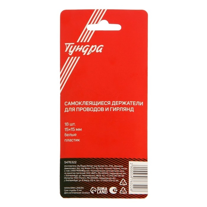 Держатель самоклеящийся для проводов и гирлянд ТУНДРА применяется для легкого, надежного и безопасного крепления разнообразных аксессуаров на вертикальной и горизонтальной поверхностях.