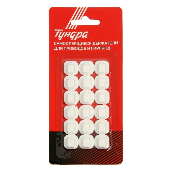 Держатель самоклеящийся для проводов и гирлянд ТУНДРА krep, 15х15 мм, 18 шт.