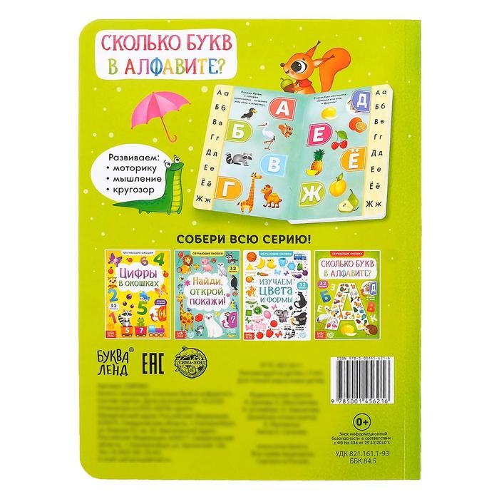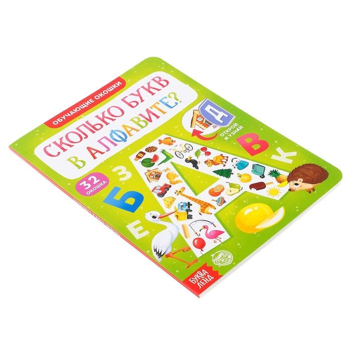 Книга картонная с окошками «Сколько букв в алфавите?» 10 стр.