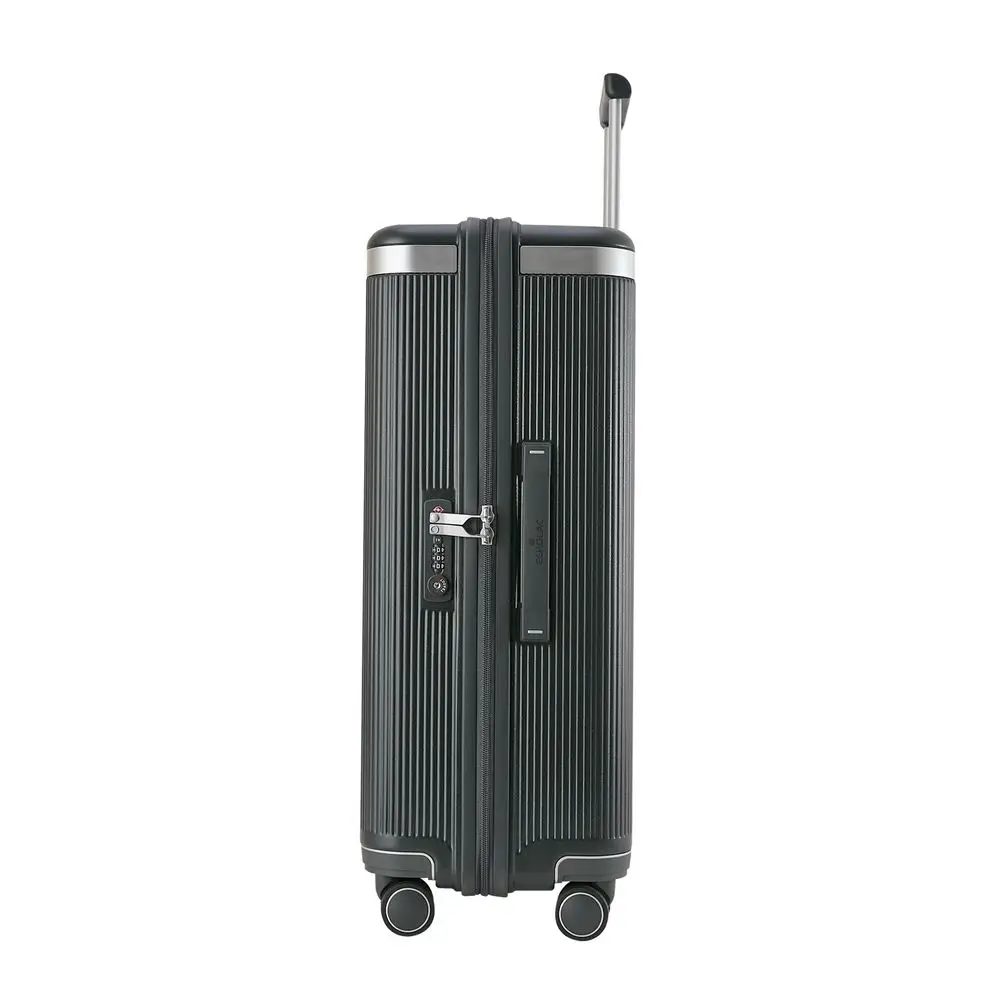 Итальянский дизайн чемодана Dynasty, вдохновленный древней архитектурой Рима, нашел свое воплощение в массивном корпусе из устойчивого к царапинам поликарбоната с кованой алюминиевой полосой-акцентом. Этот ключевой визуальный элемент довершает общую картину и значительно повышает структурную целостность и прочность изделия.
