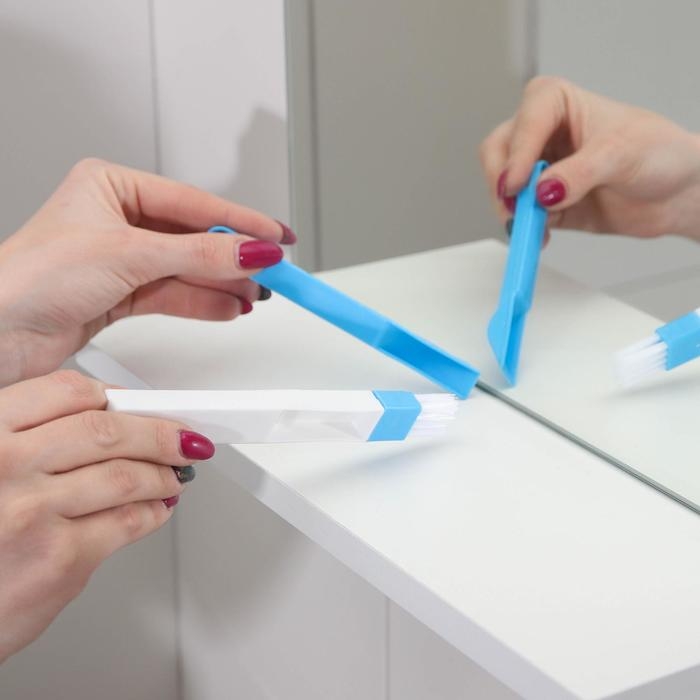 - Многофункциональность: сочетание щётки и совочка-скребка позволяет справляться с различными задачами по уборке, будь то пыль в уголках окон или грязь на клавиатуре.