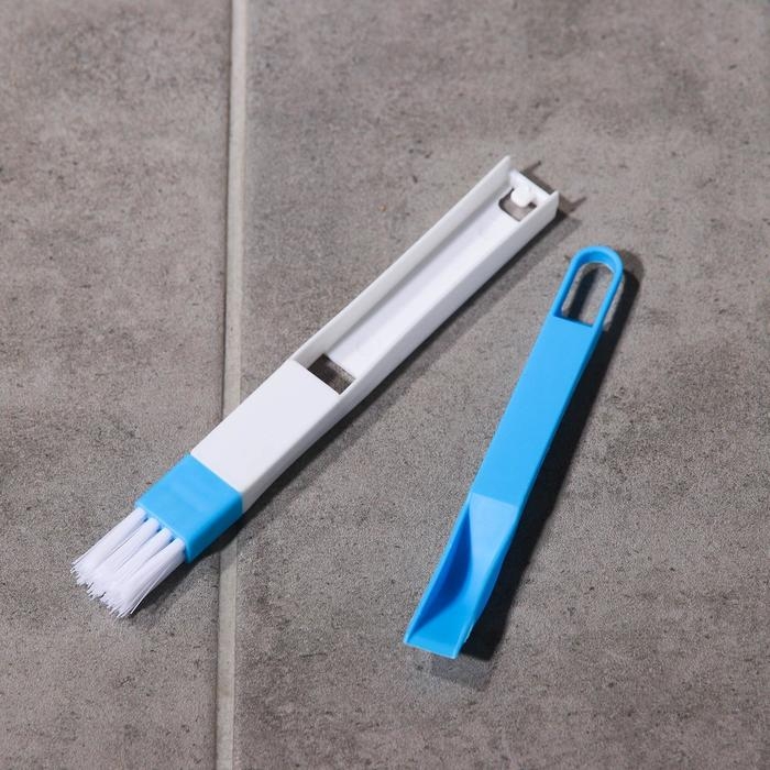 Щётка-кисть для очистки окон и узких проёмов Доляна, с совочком-скребком, цвет МИКС