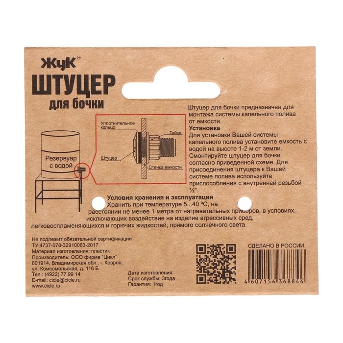 Штуцер для бочки, пластик, «Жук»