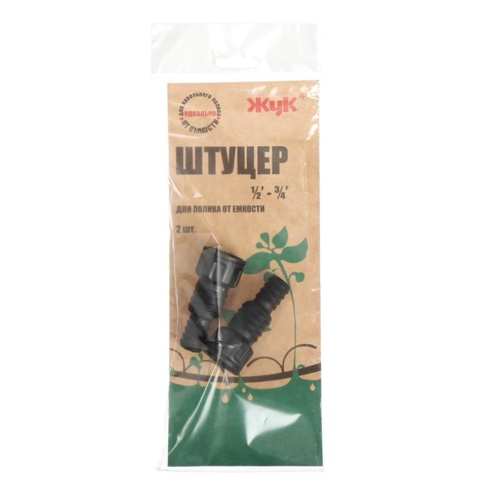 Штуцер, внутренняя резьба 1/2", для шланга 1/2" (12 мм) – 3/4" (19 мм), набор 2 шт., пластик, «Жук»