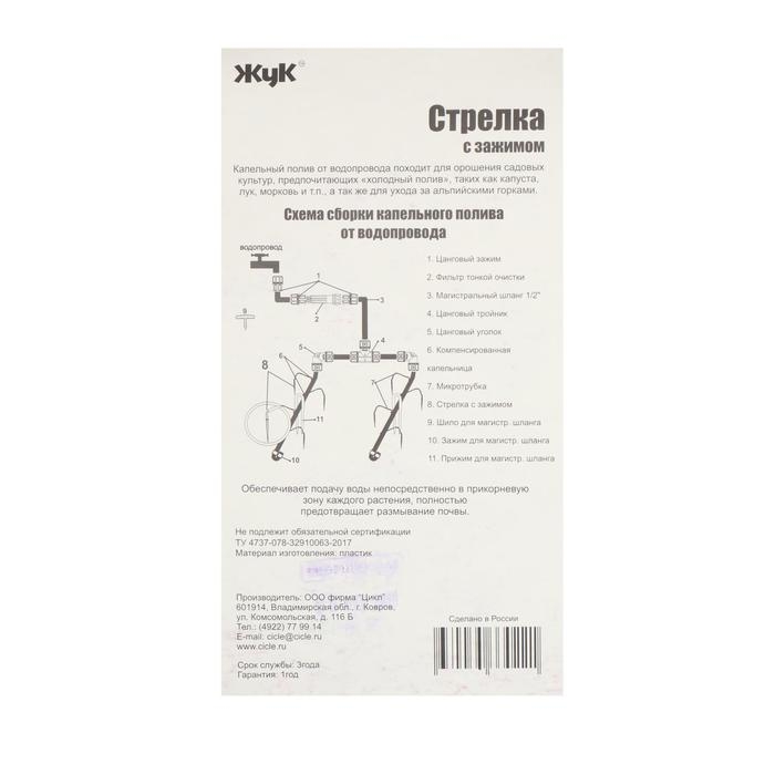Набор стрелок с зажимом для капельного полива от водопровода, 10 шт., «Жук»