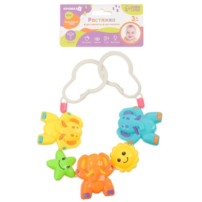 Растяжка на коляску/кроватку «Слоники», 3 игрушки, цвет МИКС, Крошка Я