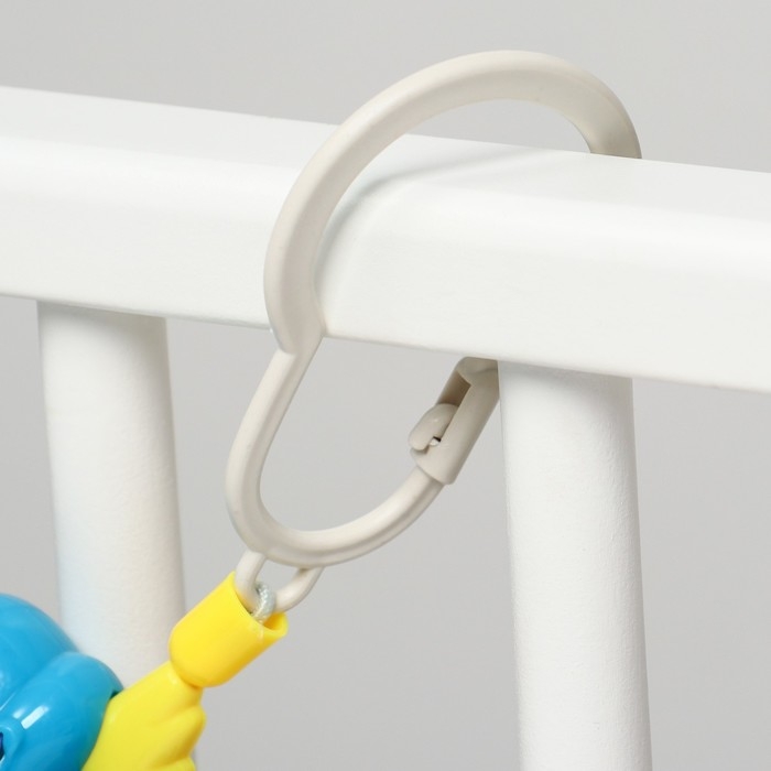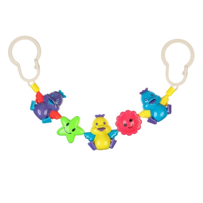 Яркая погремушка-растяжка оснащена удобными креплениями, которые подойдут практически для любого типа коляски, кроватки и даже автокресла.