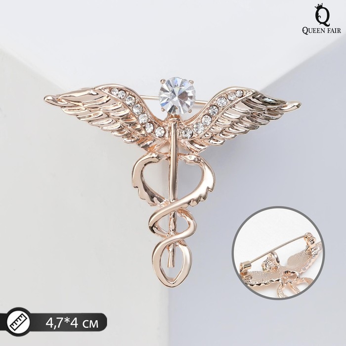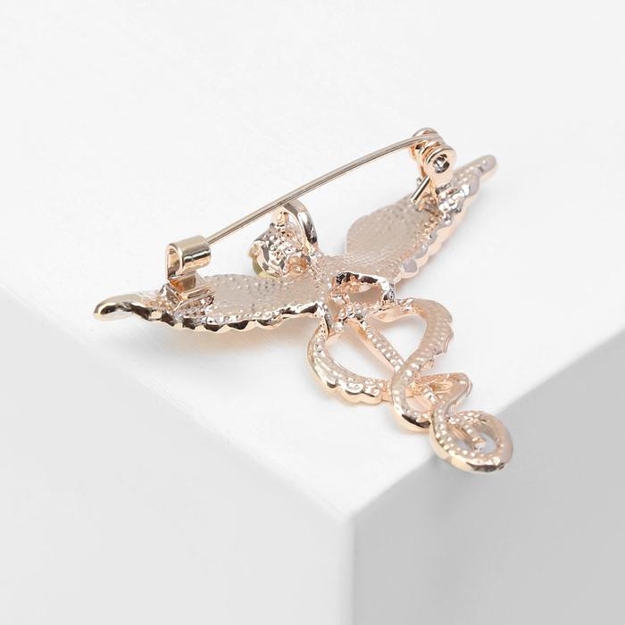 Брошь "Кадуцей", цвет белый в золоте