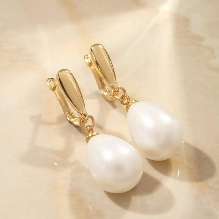 Серьги с жемчугом «Грейс» пухлая капля, цвет белый в золоте