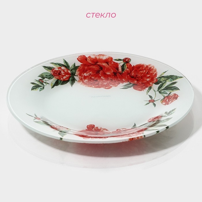 Тарелка стеклянная Доляна «Пионы», d=20 см
