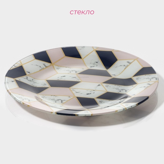 Тарелка стеклянная Доляна «Розовый мрамор», d=20 см