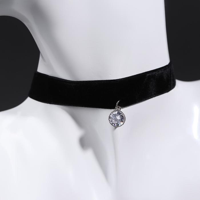 Чокер «Стразинка» кружок, цвет белый в серебре, 33 см