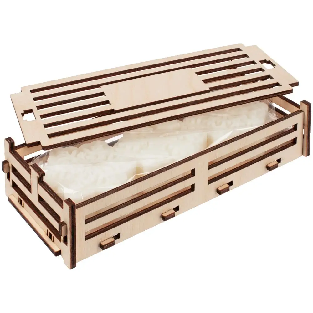 Набор из трех свечей в фанерном ящичке. Каждая снежинка в наборе представлена в своем неповторимом узоре.Набор из 3 свечей в ящике. Снежинки упакованы в один полиэтиленовый пакет.