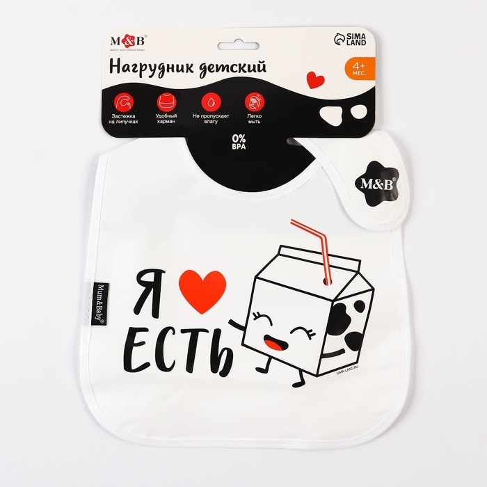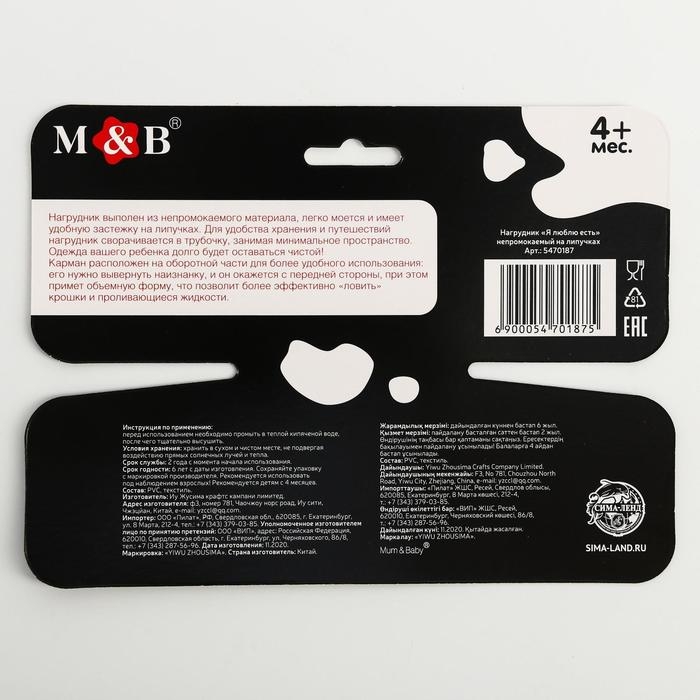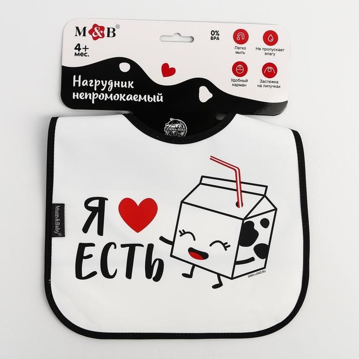 Нагрудник для кормления «Я люблю есть» непромокаемый на липучке, с карманом