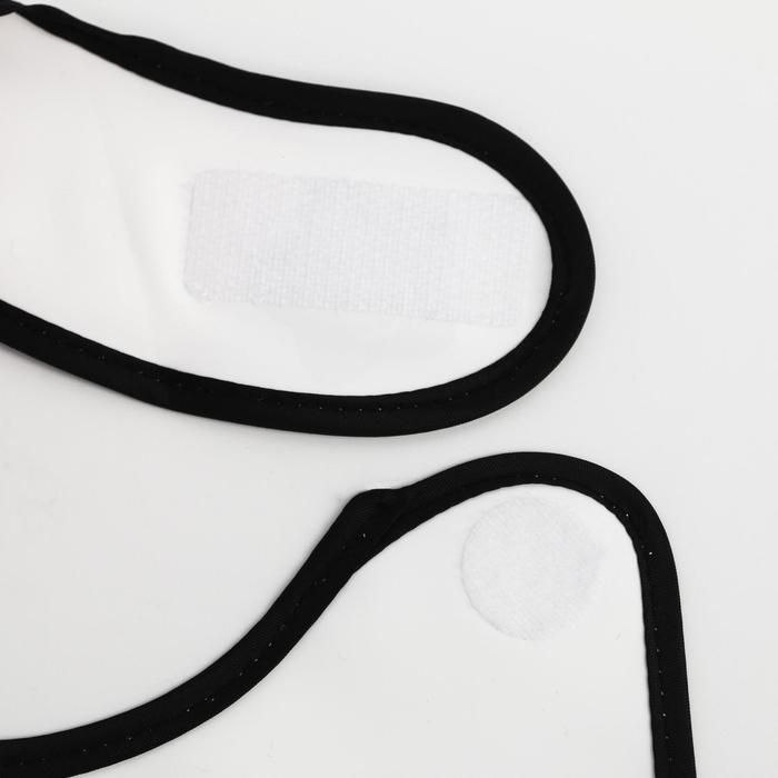 Изделие выполнено из мягкого материала, имеет безопасные края. Приспособление фиксируется за шеей с помощью застёжки.