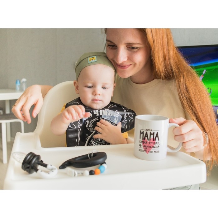 Нагрудник не промокает и качественно защищает, поэтому одежда малыша не испачкается в процессе кормления. У слюнявчика есть специальный кормашек, который выворачивается на лицевую сторону на время приема пищи, в него попадают все крошки: чистым останется не только сам ребёнок, но и место, где он кушает.