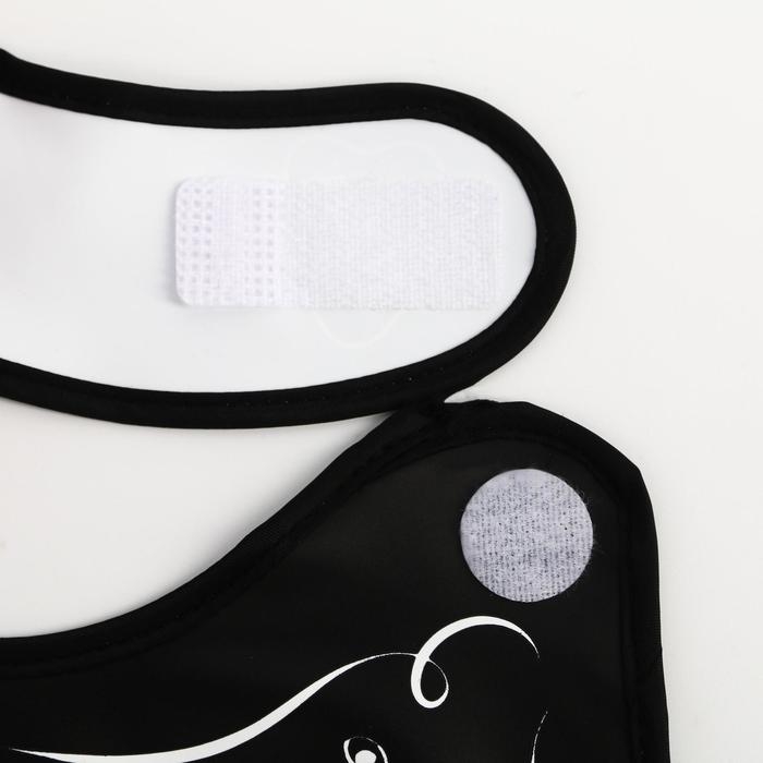 Изделие выполнено из мягкого материала, имеет безопасные края. Приспособление фиксируется за шеей с помощью застёжки.