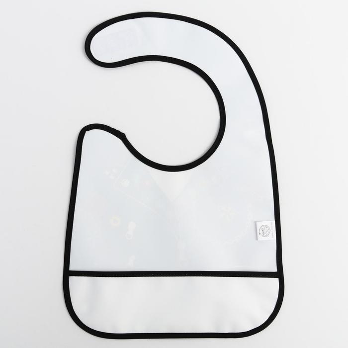 Нагрудник не промокает и качественно защищает, поэтому одежда малыша не испачкается в процессе кормления. У слюнявчика есть специальный кормашек, который выворачивается на лицевую сторону на время приема пищи, в него попадают все крошки: чистым останется не только сам ребёнок, но и место, где он кушает.