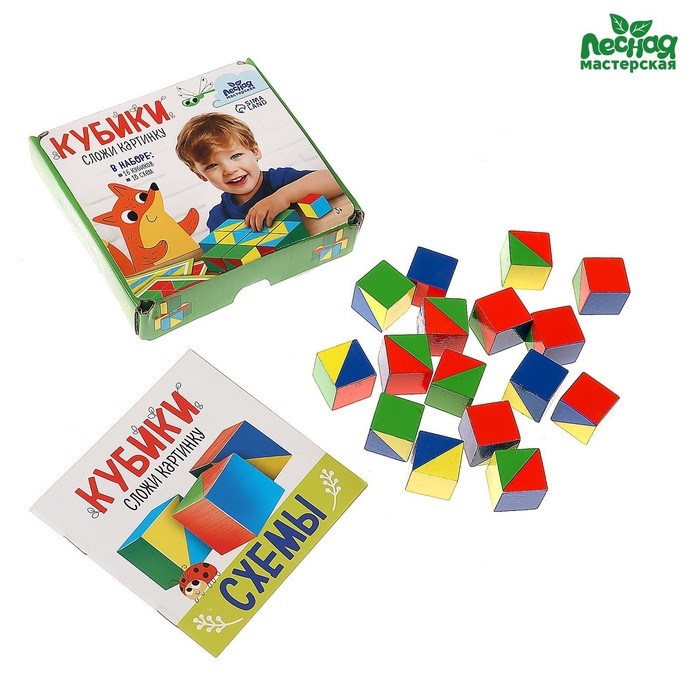 Набор цветных кубиков,16 штук, 6 × 6 см