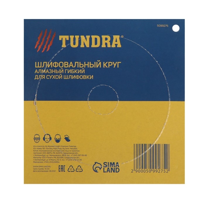 Алмазный гибкий шлифовальный круг ТУНДРА "Черепашка", для сухой шлифовки, 100 мм, № 1500