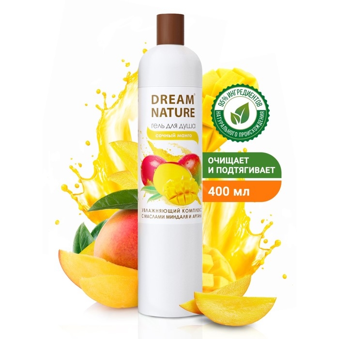 Гель для душа Dream Nature "Сочный манго" содержит увлажняющий комплекс с маслами миндаля и арганы, обладает приятным ароматом спелого манго, нежно очищает, питает и увлажняет кожу.