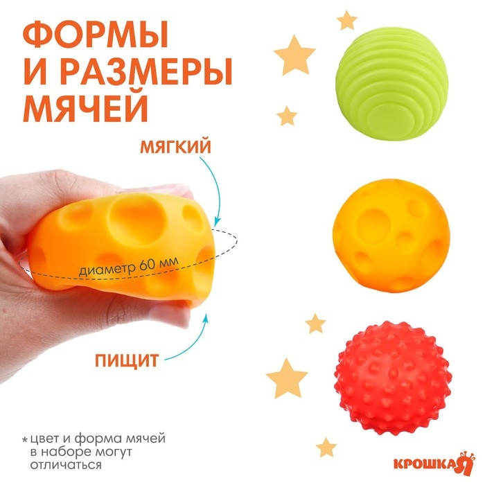 Набор развивающих тактильных мячиков «Малыши-кругляши», с пищалкой, 3 шт, Крошка Я