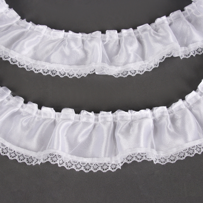 Тесьма белая атлас с кружевом 6 см, в упаковке 10 метров