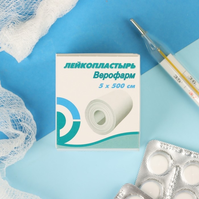 Лейкопластырь фиксирующий 5х500 см. Лейкопластырь Верофарм фиксирует повязки на ранах, царапинах, фурункулах. Применяется в стационарных и амбулаторных лечебно-профилактических и медицинских учреждениях и в домашних условиях.