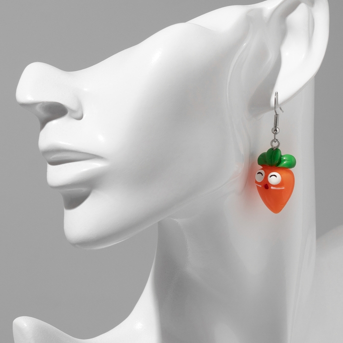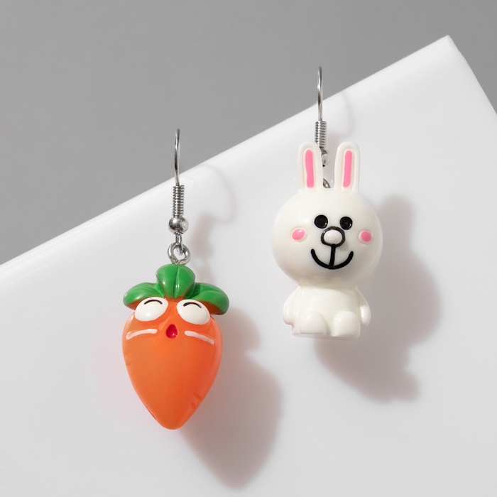 Серьги с эмалью «Вкусняшки» зайчик и морковка, цвет оранжево-белый