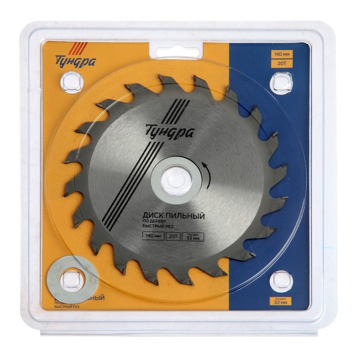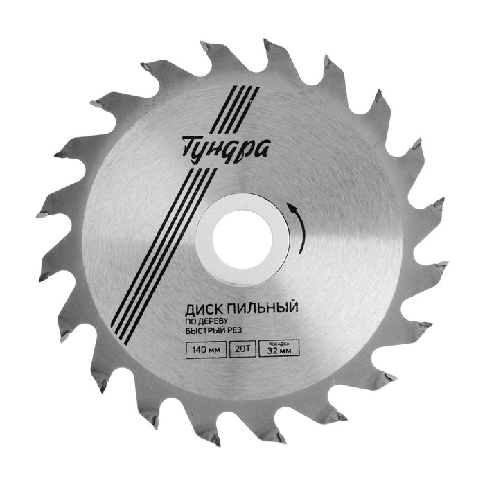 Диск пильный по дереву ТУНДРА, быстрый рез, 140 х 32 мм (кольца на 22,20,16), 20 зубьев