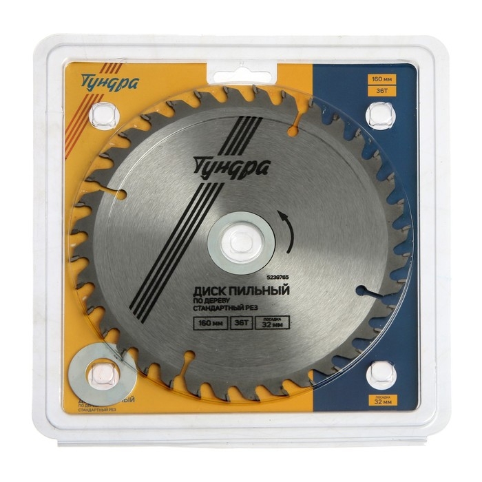 Диск пильный по дереву ТУНДРА, стандартный рез, 160 х 32 мм (кольца на 22,20,16), 36 зубьев
