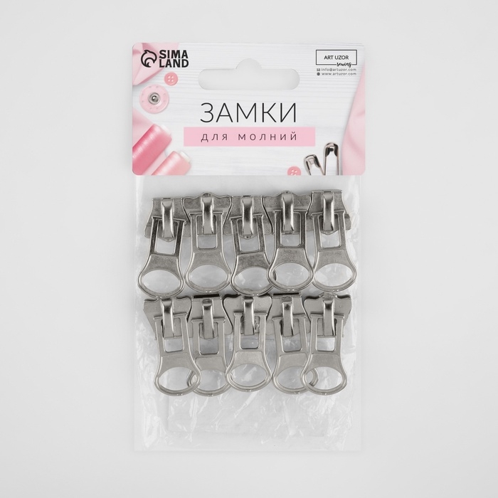 Бегунок автоматический для металлической молнии, №5, декоративный «Ладонь», 10 шт, цвет никель