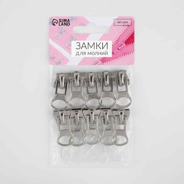 Бегунок галантерейный для молнии «Трактор», №8, 10 шт, цвет никель
