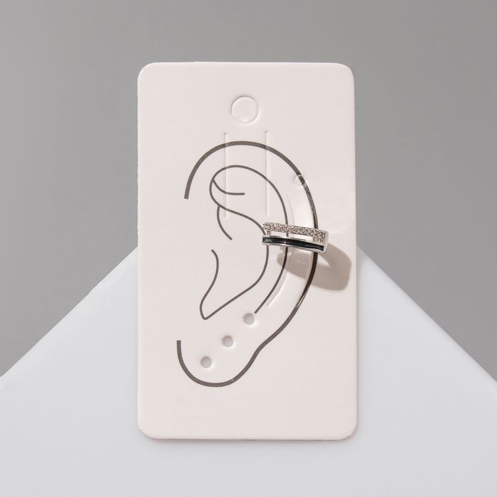 Серьга «Кафф» чёрные и белые линии, цвет чёрно-белый в серебре