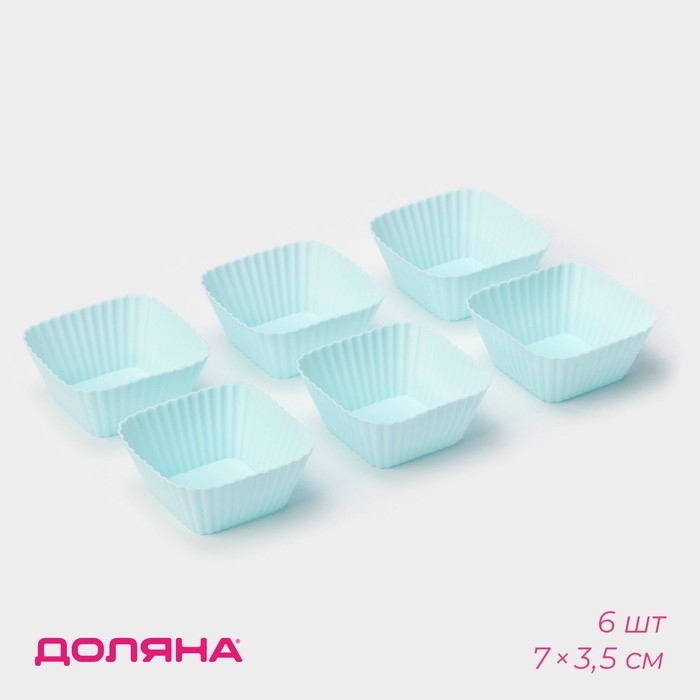 Набор форм для выпечки Доляна «Риб.Квадрат», силикон, 7×3,5 см, 6 шт, цвет мятный