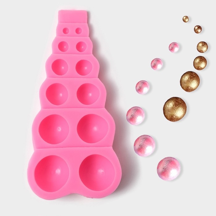 Молд «Полусферы», силикон, 14×7×2 см, 12 ячеек, цвет розовый