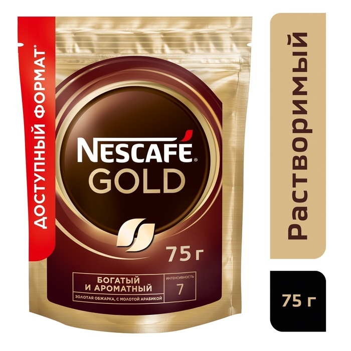 Кофе натуральный растворимый Нескафе Голд, в пакете, 75 г