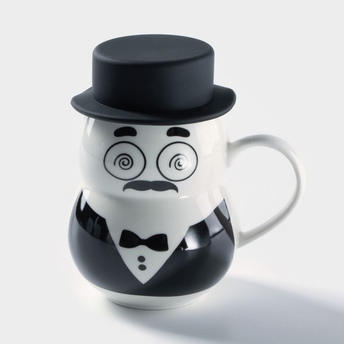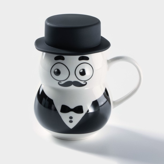Кружка керамическая с силиконовой крышкой «Джентльмен», 380 мл, рисунок МИКС