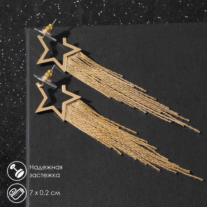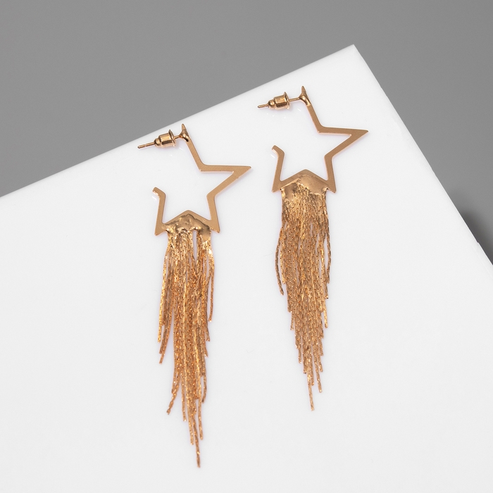 Серьги висячие «Дождь» звезда, цвет золото, 7 см
