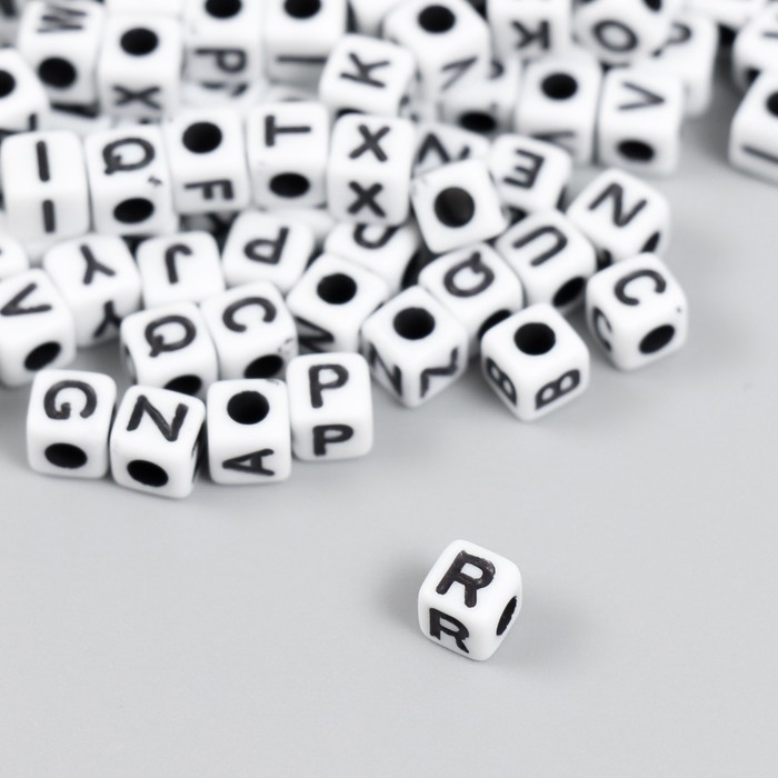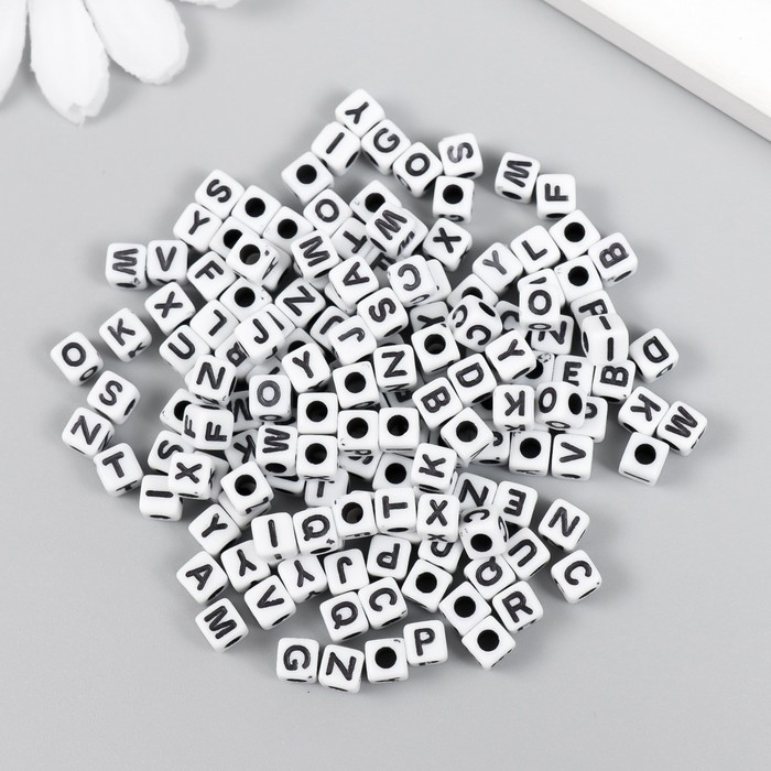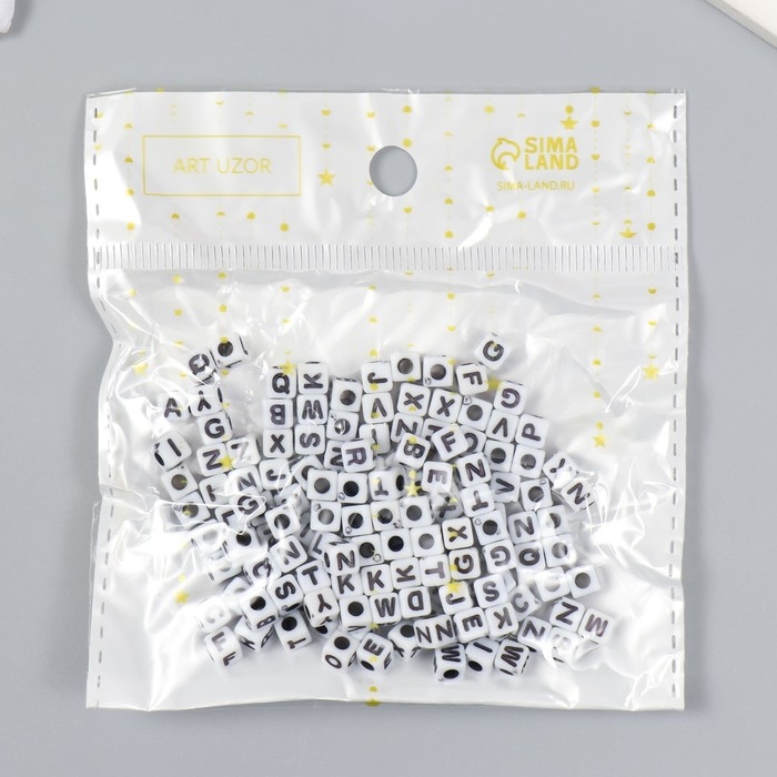 Бусины для творчества пластик "Английские буквы на кубике" белые набор 15 гр 0,5х0,5х0,5 см 547302