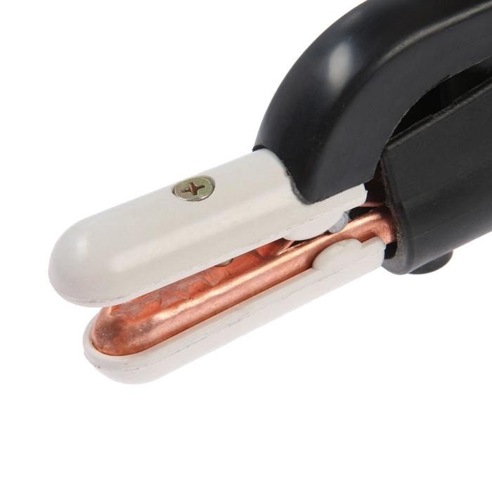 Данный электродержатель предназначен для работы с током не более 300 А. Пластиковые ручки являются изолятором, но при этом важно, чтобы электроведущие части держателя не соприкасались со свариваемым изделием или руками человека.