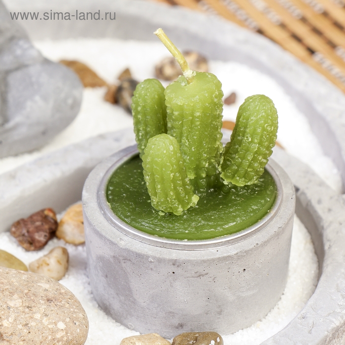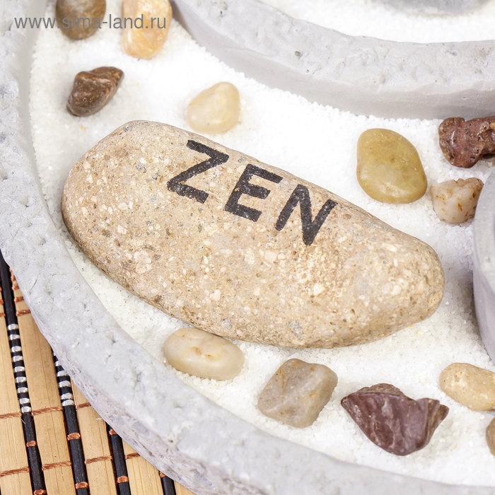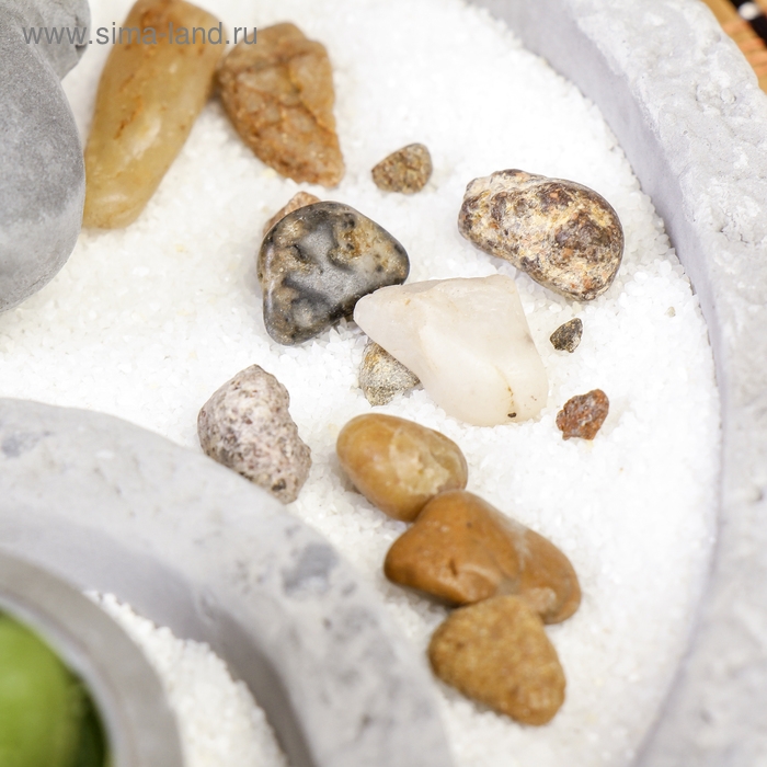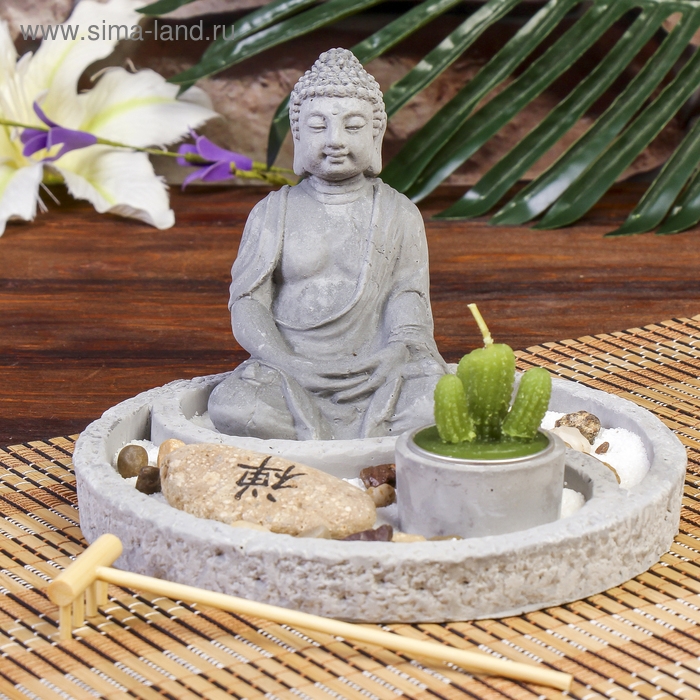 Сад камней Дзен "Будда в саду" серый, песок белый + свеча + камни 13х19х19 см